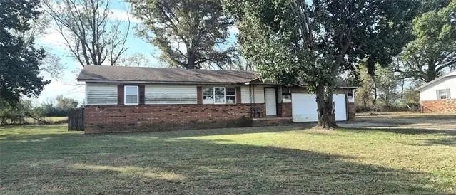 Newer roof , flooring has been removed , there is a heat air unit , but unknown if working. Septic, rural water, located on Old Highway 33 , Chouteau super close to Industrial Park and Highway 412 and about 40 minutes from Tulsa.
