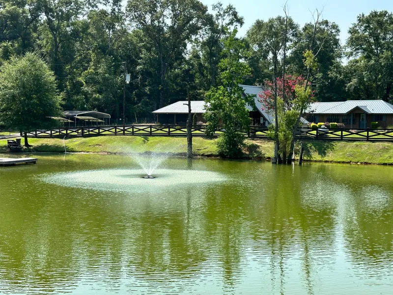 3 bedrooms, 2 baths, an awesome 20'x40' shop/man cave w/outdoor shower, salt water pool, pond (w/fountain and dock) stocked with bass & bream & a food plot for deer on 6 acres, surrounded by woodlands and hayfields. The place even comes with a jon boat from which you can fish and switch to a new spray pattern on the pond fountain.