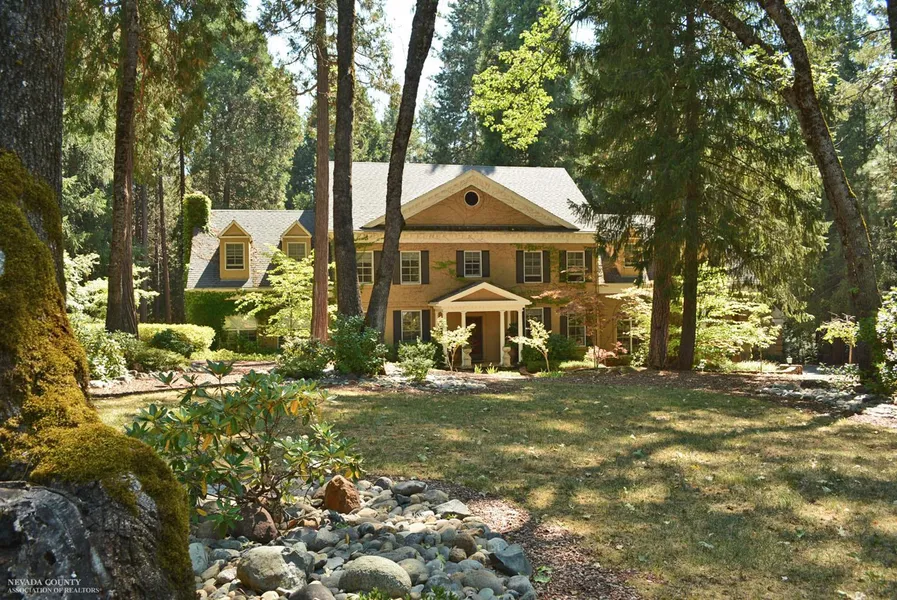 LUXURY IN THE COUNTRY! Breathtaking Georgian-style home on a level, low-maintenance combined 3.4 acre parcel in one of Nevada City's most desirable neighborhoods! Remarkable woodworking touches throughout including formal living room with fireplace and library, gourmet kitchen with wonderful counter space and top of the line appliances, plus a one of a kind 1300 s.f. family room designed after an Old West Parlor with 22' ceilings covering a fabulous sitting area, 20' bar and original stain glass window. 4 bedrooms and loads of storage, plus contiguous parcel with charming cabana and in-ground swimming pool and waterfalls.-opportunity to build another home and have a multi-family dynamic! 2 car garage and cupola, plus detached 4 car garage with room above, circular driveway and beautiful natural landscaping! This is a very peaceful setting and just minutes to downtown historic Nevada City! Priced well below replacement value!!
