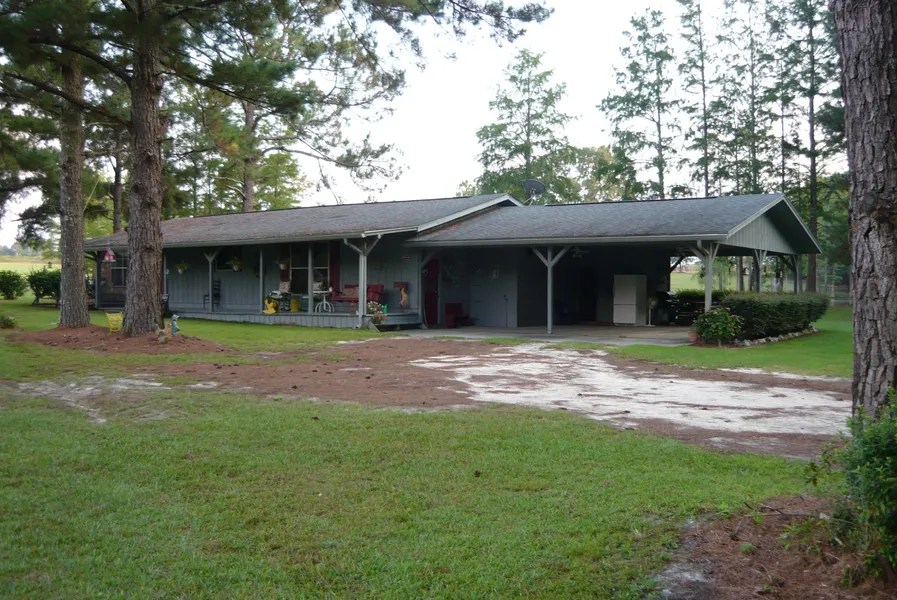 OUTSTANDING VIEW! 1590 sq. ft. home situated on 13 acres. Beautiful pond with fountain/aerator surrounded by cypress trees, with water, power and sewer available on opposite side of pond from home. property has two 24'x48' barns, 5 strand barbed wire fencing, and partially wooded. Approx. 1345' of paved road frontage and approx. 875' of dirt road frontage. Could easily be divided with entrance off of Reese Church dirt road. Remaining acreage is currently used for cutting hay but could be used for horses, cattle, or recreation. Approx. 50 miles from Florida Beaches. View pics and virtual tour