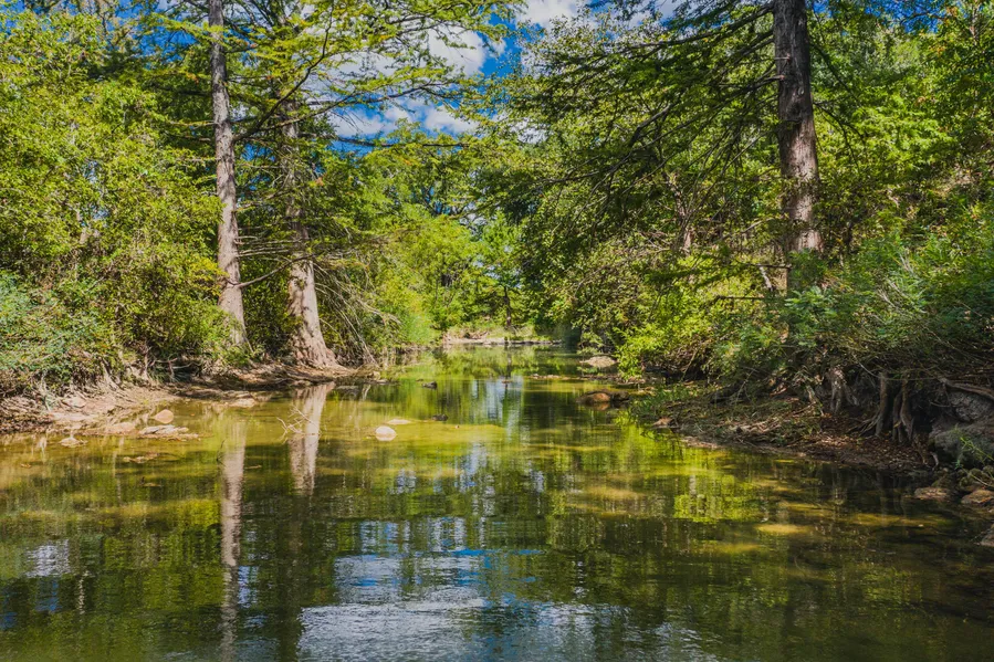 SERENO RUSCELLO ESTATE marries the Rosso Creekhouse (3.2 acres) with the inviting Chic Creek Cottages (9.8 acres), creating a unique destination. With rapid population growth in the area, this estate, just 9 miles from Fredericksburg's city limits and convenient access to both Austin and San Antonio, epitomizes Texas wine country living.