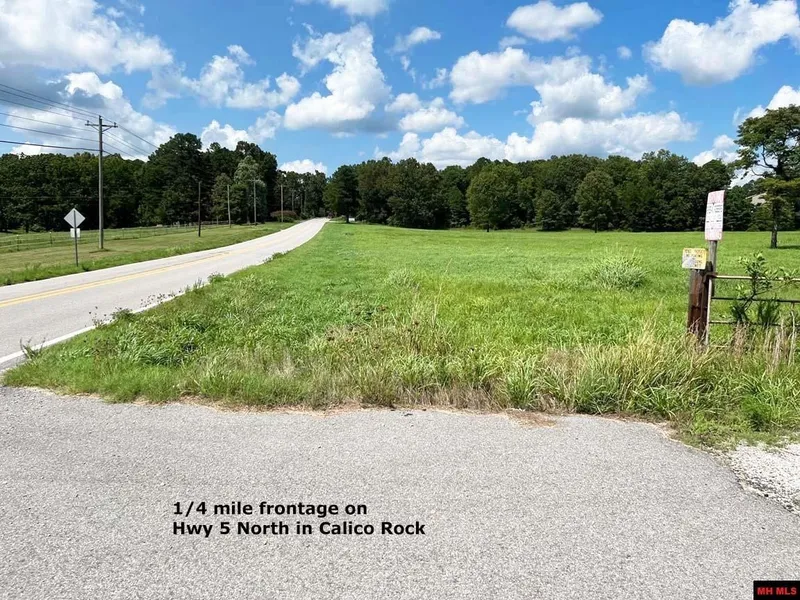 13 Acres m/l on Hwy 5 in Historic Calico Rock available now. Lays level with pasture and some woods. No restrictions and could serve as residential or commercial. This property fronts on paved Highway 5 and 2 other sides with good county-maintained gravel roads. Electric is already on property to old shop building. Metal building 60x100’ with steel construction, concrete floor, electric and old wood stove. No well or septic known. Location Is 6 miles from White River, 25 miles south of Mtn. Home, shopping and medical nearby and trout fishing in the White River!