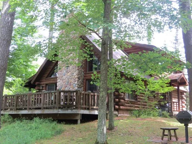 Minocqua Chain Furnished Tomahawk Log Home w/2 car garage at the popular Beacons! Great rental history! Beautiful, full-log 2BR, 2BA fully furnished stand-alone condo! Bearskin Trail is just down the road and town is just minutes away! Main floor has an open-concept design with cathedral ceilings, fieldstone fireplace, granite countertops, pine cabinets, hardwood flooring, laundry, Master Suite with master bath & whirlpool tub! The loft has a large sleeping area, walk-in closet so spacious it's currently used as addtl sleeping area and 3/4 bath! Sleeps 8-9 people comfortably! Flanked on either side by 2 log homes homes and wooded privacy, enjoy quiet time on your deck facing the woods! You'll love the amenities at the Beacons including pool, work-out room, tennis courts, game room & your own pier slip! A 24x24 2-car garage is included and the Beacons will manage the rental should you choose to enjoy the extra income. Come live the good life...you know you want to.
