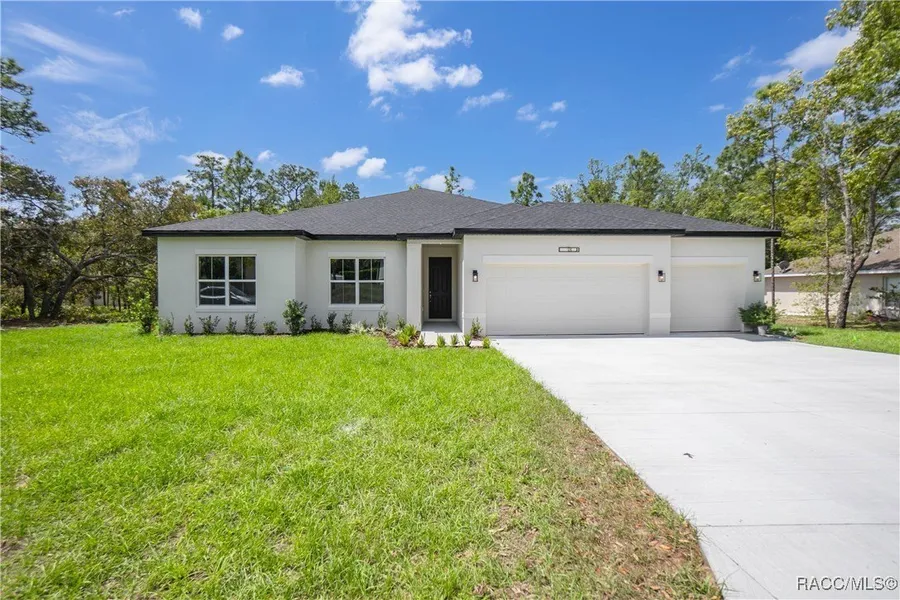ABSOLUTELY GORGEOUS BRAND NEW 4 -bedroom, 3-bathroom home located in the beautiful community of Sugarmill Woods. Situated on a greenbelt for added privacy and natural views, this beautifully crafted residence offers 2,092 square feet of living and a spacious 3-car garage. SELLER OFFER 3% RATE BUY DOWN WITH PREFERRED LENDER. Designed with comfort and functionality in mind, the open floor plan features a gourmet kitchen complete with white wood cabinetry, quartz countertops, stainless steel appliances, an island, breakfast bar, and sizeable pantry-perfect for everyday living and entertaining. Additionally, the interior presents a split floor plan providing privacy, a primary suite offering a walk-in closet and an en-suite bathroom that includes dual sinks and shower, a combination of luxury vinyl plank flooring, tile, and plush carpet enhances the style and durability throughout. The interior laundry room is fully equipped with a washer, dryer, and folding area for convenience. The exterior features a covered lanai and a fully landscaped yard, ideal for enjoying Florida's year-round sunshine. This home is a perfect blend of modern finishes, practical design, and serene surroundings. The home is conveniently located minutes from shopping, amenities and the Suncoast Parkway. Call to schedule your tour!