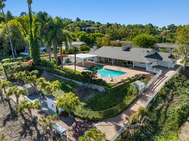 Sweeping city lights, mountain and harbor views from this classic ranch style home situated on a tree-lined, cul-de-sac street behind the secure and private gates of Rolling Hills. This sprawling, one level home sits nicely on an approximately 1.5 acre lot and features an open floor plan with 4 spacious bedrooms, 3 baths, living room with fireplace, eat-in kitchen with a large center island, professional style cook top and broiler, double ovens and Sub-Zero refrigerator, dining area and fireplace. A wall of sliding glass doors invites all to step out to the welcoming back yard, an entertainers paradise, featuring a large swimming pool, open paver patio, bar area covered by lovely pergola, perfect for gatherings. Beyond the main entertainment area, a paver path leads to the lower section of the property, where you’ll find two outbuildings and a one-stall barn. This property has been owned and loved by the original family for over 70 years and is coming to the market for the first time. The property combines the best of location, space, and potential—a rare find with panoramic views, ample acreage, and a thoughtful layout. Embrace the opportunity to make this remarkable property your own. This property is offered separately from 15 Chuckwagon Road, the adjacent vacant lot, which is also available for purchase. However, both properties can be bought together to create a magnificent estate.