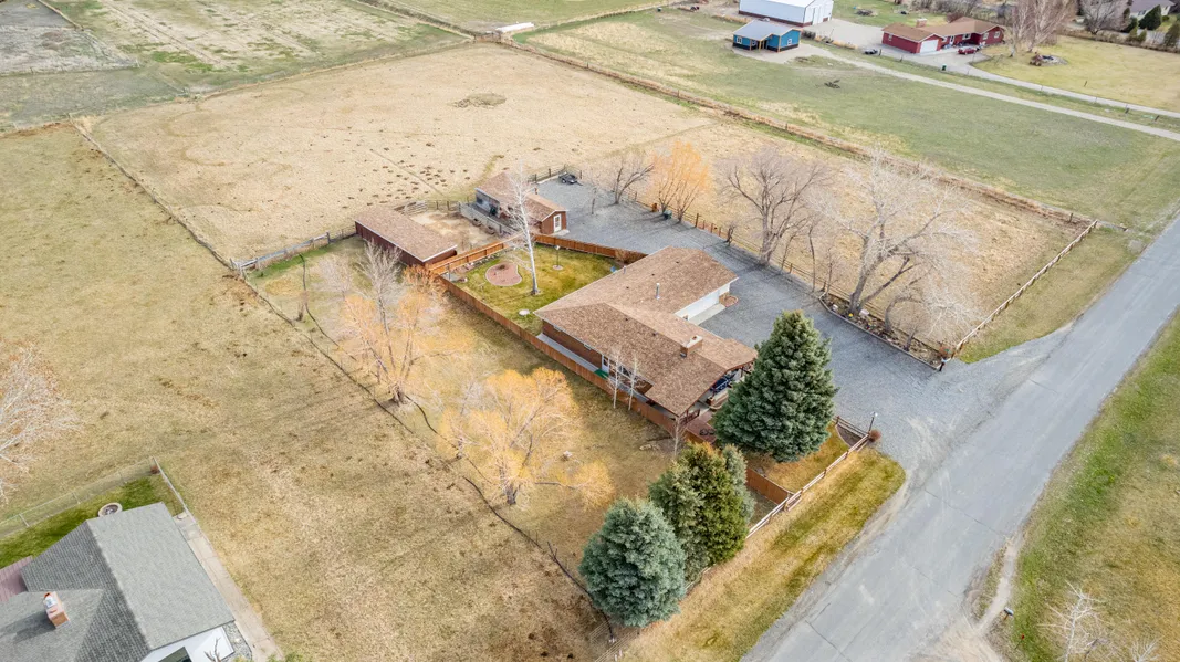 Beautifully maintained three bedroom, two bath, one level, brick and seamless sided home just outside of town. This 2.78 acre property is equipped for horses, with irrigated pasture, corral, farm utility building with hay storage, insulated tack room, stables. The striking exposed beam covered patio is a grand entrance to the property and offers a comfortable place to gather-Southern exposure, views, shelter from weather and has sliding door access directly to the kitchen and dining area. The home is immaculate, has an authentic wood fireplace in the living room, larger sized windows give generous amounts of natural sunlight into the home, smart and easy one level floor plan, double car attached garage is heated and has an automatic door- garage is oversized at 650 sf. Gravel drive, well maintained fences, manicured landscaping, peaceful location. Pride of ownership is evident-
