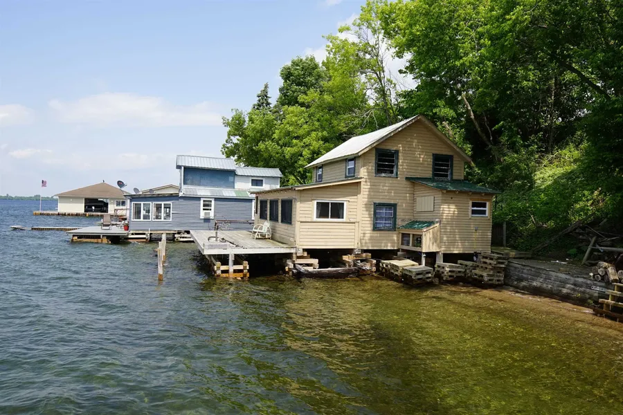 Sand beach, gorgeous view of the shipping channel and the Ogdensburg International Bridge. Need I say more? All new cribbing. Most windows are vinyl replacement. Bright and airy. How often can you be right on the st. Lawrence at this price point? There is a storage shed with a washing machine. All furniture shown isincluded as well as cookware, food preparation utensiis ans serving and eating necessities. Pump is brand new and full bathroom is refreshed