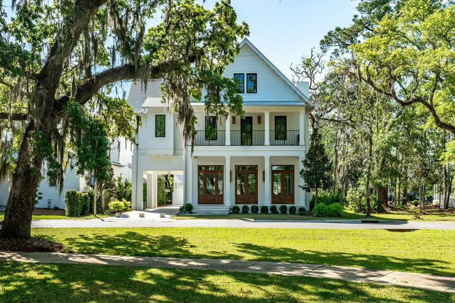 Introducing 13 Tyler Drive, an extraordinary new-construction estate located within the prestigious, gated community of Churchill Oaks. Thoughtfully positioned to maximize stunning lake and park views, this six-bedroom, six full and two half-bath residence offers an unmatched blend of classic architecture, modern sophistication, and high-end finishes throughout. The home's flowing floor plan unveils expansive living and dining spaces anchored by soaring ceilings, custom millwork, and designer fixtures. The second-floor primary suite is a private sanctuary, overlooking the resort-style pool and lush grounds. A detached carriage house offers additional flexibility, perfect for guest accommodations, a private office, or a poolside cabana... Outdoor living is paramount, with a sparkling pool, covered summer kitchen, and expansive terrace spaces crafted for effortless entertaining year-round. A third-floor bunk and multipurpose room provide additional space for recreation, media, or additional sleeping quarters. Beyond your private oasis, Churchill Oaks offers an unparalleled lifestyle with world-class amenities including a resident-only clubhouse, a bayfront resort-style pool, deepwater marina with boat slips, expansive fitness center, catering kitchen, private event spaces, and over 40 acres of parks, lakes, and preserved green space.