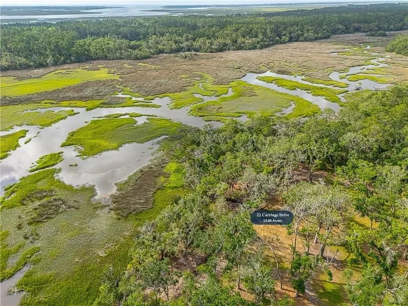 Secluded estate homesite located on Jones Creek within Butler Plantation, a gated enclave comprised of 22 estate parcels. 22 Carriage Drive encompasses 13.05 acres and may be purchased individually or together with adjacent 24 Carriage Drive, creating a combined 21.56-acre waterfront estate of uncommon scale.
