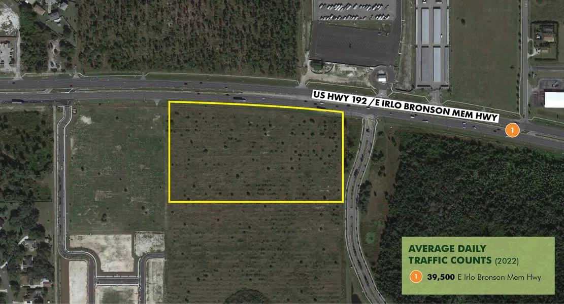 Commercial land located in the heart of Osceola County, one of the fastest growing regions in the country! This property is surrounded by newly built residential and commercial developments. Pulte Homes has a major subdivision to the east, DR Horton has begun construction on a SF project on the western boundary, and Pulte Homes just purchased 74 acres south of this site for a development of 260 SF homes.