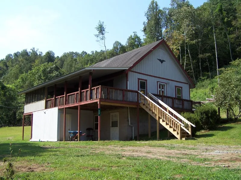 #00296 Enjoy country water front living with a rental unit or mother-in-law suite with these two houses on 13.39 acres on the waters of Steer Creek in Calhoun County, WV. The main house is a T1-11 sided, shingled roof, one story home with a full basement that has been partially finished, and a big upstairs loft area. The main floor of the home has a newly remodeled kitchen with a dining area, living room, one bedroom, a bath all with new laminate flooring. The basement has 2 bedrooms and a full bath. There is one big room in the upstairs loft area. The house features a covered front porch with part of it being screened in and a side deck. The cottage has an eat in kitchen with new cabinetry. There are sliding glass doors that lead onto a covered screened deck with views of the water. Both the home and cottage are heated by a forced air propane furnace. The home has backup propane wall heaters and the cottage has backup propane space heaters. Each of the houses have their own drilled water well and septic systems. Exterior of the cottage is T-11 siding and it has a shingled roof. The acreage is mostly wooded. There is room for a nice size garden at the main house. There is also a garage/workshop/storage building on this property by the cottage. This property offers both hunting and fishing. So whether you need a 2 family property or perhaps some rental income, you owe it to yourself to check out this property. Priced at $174,900.