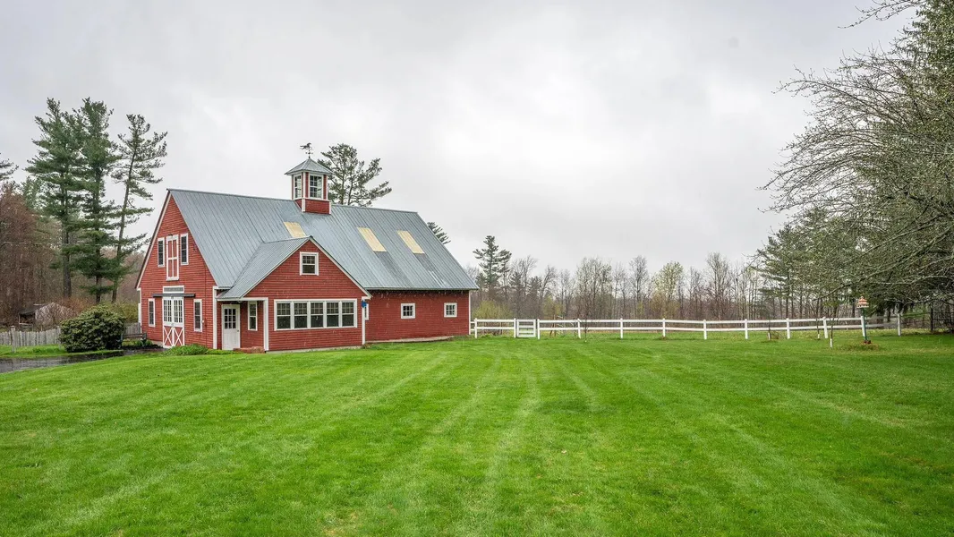 Horses, Country Living? This 13+ acre property is located in the horse-friendly town of Chester NH and offers lush pastures, a versatile horse barn, private pond, trail access and stunning New Englander home. The exquisite center aisle 8-stall barn is horse ready and features matted stalls with removable dividers, wash stall, tack room, office w/sink & water heater, GFCI outlets and stairs to expansive hayloft with access to cupola. Plenty of room for boarders. The 60' round pen, 100x200 riding arena and paddocks have not been recently used and welcome newcomers! The home has been lovingly cared for, renovated and updated. Wood & tile floors throughout most of the house. The eat-in-kitchen has tin ceiling, granite counters, newer appliances. 1st floor laundry with wine chiller and 1st floor bath with steam shower directly off of the kitchen. You'll also find a spacious dining room for large gatherings; cozy wood paneled office/study and a bright living room open to a tile/marble floored sunroom offering a propane stove, access to the outside patio and views of side lawn with fruit trees and gardens. Four bedrooms and full bath with granite counters & tile floor on 2nd floor. New and expansive 3rd floor family room. Two detached garages offer space for 3 cars, workshop and tons of storage. Within an hour commute to Boston and 25 miles to 495/93 intersection. Special property and ideal for both boarding or private barn.