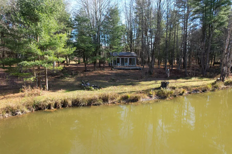 Tucked back in off the road is the start of your new favorite place to go. Wake up from your tents, camper, the existing enclosure, or why not all of the above. This is YOUR campground! Start sending out the invites for summer get-togethers because there is plenty of room. There are 4 secluded acres of landing at the road front, your own 1 acre pond, and another 5 acres to mosey along the gorges rim.