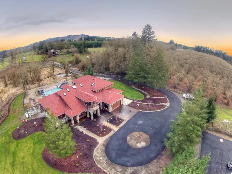 Extravagant interior features: 47 windows and 7 skylights, all tinted for efficiency; 11ft ceilings with multiple tray & barrel ceilings; high quality knotty Alder cabinets, drawers, doors and trim; concrete and granite countertops, oil rubbed bronze fixtures, hammered copper sinks throughout; four large walk-in vertical stamped concrete showers with hand hewn trim
