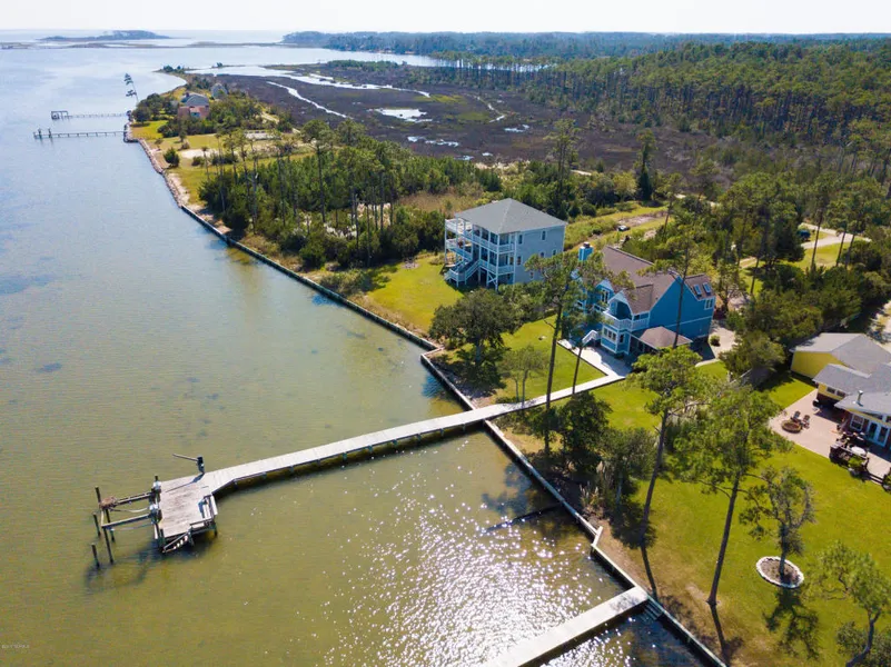 Coastal Waterfront Paradise! Custom built 3 bedroom and 2.5 bath waterfront home on Core Sound. From the front door indulge in natural light and unobstructed water views. The great room features wood flooring, cathedral ceiling, fireplace, and handcrafted stained glass windows. The open kitchen has recessed lighting, granite countertops, bar, and a reverse osmosis water filtration system. Up the custom cantilever staircase across the second level catwalk find the Master bedroom with vaulted ceiling, walk-in closet, and private covered balcony. Master bath includes a double vanity, jetted tub, and separate shower. Off the kitchen enjoy a screened porch for outdoor living. Home offers a private dock and boat lift; Cape Lookout and the National Seashore are only a short boat ride away.