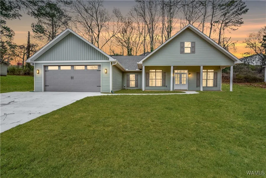 Gorgeous new construction located just minutes from The University of Alabama! This 3-bedroom, 2-bath home offers a split-bedroom design and an open-concept layout perfect for modern living. The chef inspired kitchen boasts granite countertops, stainless steel appliances, a gas cooktop, and a refrigerator. The inviting living room features a cozy gas fireplace, while the primary suite showcases a spa-like bath with a soaking tub, dual vanity, and a generous walk-in closet that conveniently connects to the oversized laundry room, washer & dryer included. Step outside to a covered back patio overlooking a peaceful wooded backdrop, and enjoy the practicality of a two-car garage. Some photos have been virtually staged to help you envision how this home could look once furnished. A thoughtfully designed home in an unbeatable location-schedule your showing today!