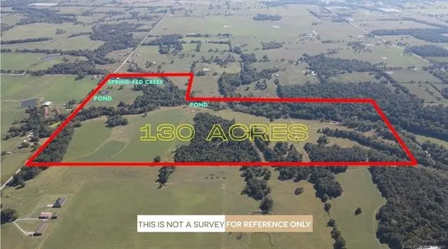 LIVE WATER! Explore Your Oasis in the Ozarks! Discover the epitome of rural bliss on this sprawling 130-acre gem nestled in the picturesque foothills of the Ozarks. Boasting over 85% lush pasture, this haven is perfect for cattle, livestock, or your dream homestead. Fenced and cross-fenced with 6-line wire, enveloped by bermuda grass and studded with majestic walnut trees, this property is a pastoral paradise. Water is abundant with three serene ponds and a live spring-fed creek that meanders gracefully through the land. A solar-generated well ensures water access at multiple locations for your livestock, and a gravity flow system adds to the eco-friendly allure. Modern amenities like rural water, natural gas, and fiber optics are conveniently available, making this a seamless blend of rustic charm and modern convenience. This haven is a canvas for your dreams, offering numerous stunning building spots with breathtaking vistas. Revel in the freedom, as there are no restrictions – design and develop to your heart's content. Enjoy the creek year-round for crawdad hunting, rock skipping, or simply unwinding to the soothing babble of the water over the large flat rock bottom. For the avid adventurer, the property offers more than meets the eye. Explore natural caves and delve into the rich history of the area, including an intriguing "powder hole." Hiking and discovering hidden, historically significant sites will be a delightful part of your everyday life. Wildlife thrives on this expanse, with deer gracing the landscape abundantly. Immerse yourself in nature and relish the tranquil beauty that surrounds you. This idyllic acreage beckons – whether you seek a rural retreat, an agricultural enterprise, or a unique development opportunity, this is your chance to embrace the Ozarks lifestyle. Claim your slice of paradise today and let your dreams take root in this untouched, natural wonderland. Don't miss this rare chance to own a piece of the Ozarks