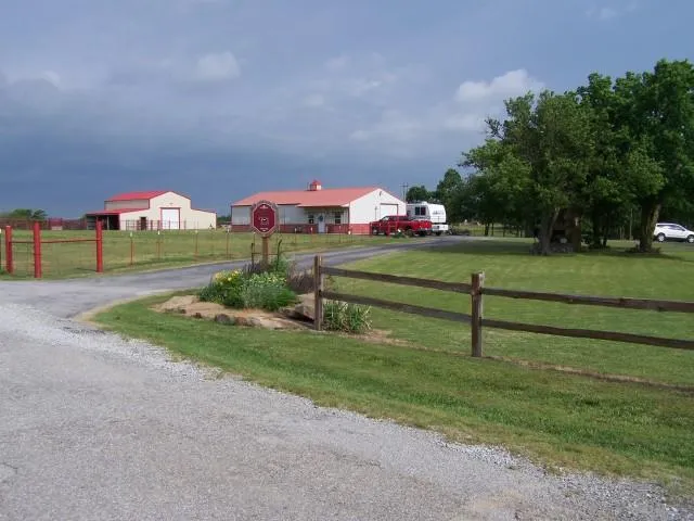 COMMENTS: A beautiful vaulted ceiling 2600 sq. foot log cabin sits atop the tallest hill in Ottawa county and overlooks the rich bermudagrass bottoms where the cattle can be watched from the front porch. The large majority of the 5 split pastures has been recently sprigged with Midland 99 bermuda, with the remaining grass being fescue. Five automatic drinkers surround the property, where most pastures can easily have access to the cleanest drinking water. The largest pasture has an extremely deep stock pond as well. A 30x60 shop sits behind the house with an attached garage to the side. The shop is heated and cooled and even includes a small living area. A 26x40 barn accompanies a set of working pens and small holding lots behind the home as well. This property is capable of maintaining 40-50 head of cow-calf pairs under good management. With concrete feed bunks, automatic drinkers, and small holding pens, this ranch would also be perfect for a stocker or preconditioning operation. With the improved bermudagrass bottomland,the property has produced magnificent hay yields in recent years. Whitetail deer and turkey reside on the property and have even been seen regularly from the front porch of the home.