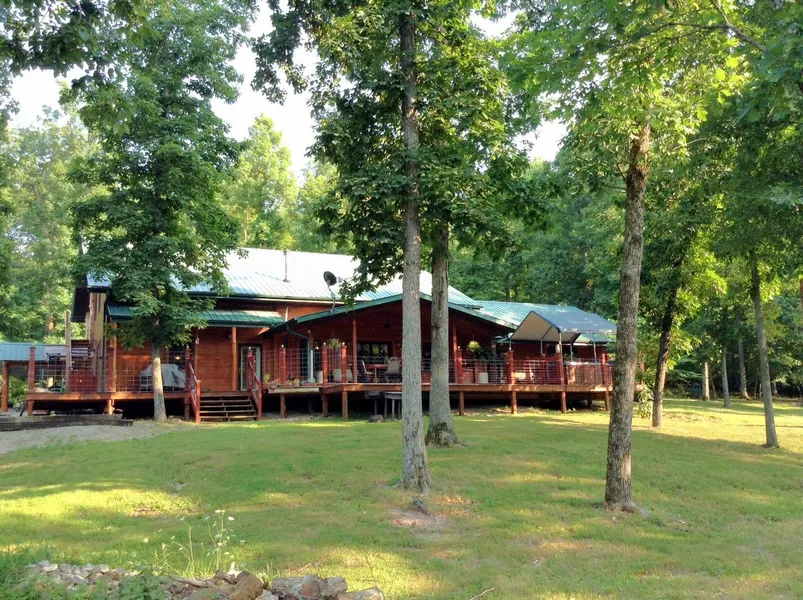 This Ozark Mountain Retreat with 130 acres includes a secluded rustic style home that is very private and secluded.