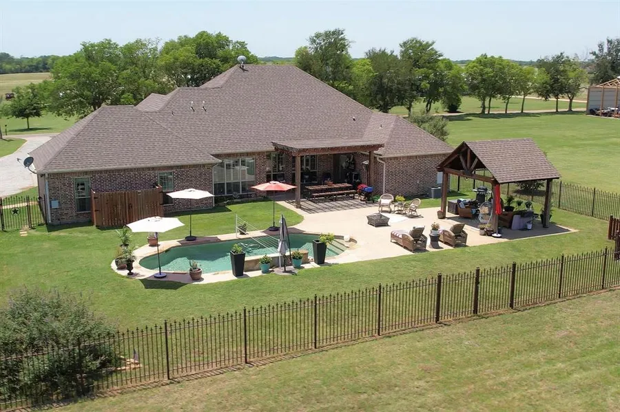 This serene picturesque property is what you have been waiting for just minutes from 75 Central & new Texas Instruments building. The drive in is extremely peaceful. There is a brick custom home with primary suite on one side & mother in law suite on other, huge family room, good size kitchen with lots of cabinets & granite countertops, inground pool surrounded by wrought iron fence & 2 separate pergolas for entertaining. To the south of home is 40 x 30 workshop with welding outlets & plumbing for bathroom, 2 large garage doors to pull in camper or vehicles. Part of the yard around the home has inground sprinkler system. There's also a built in Vivint security system with camera & monitoring. The 2 acres that surround home are open & then behind that is another 3 acres (plus or minus), then to the right of the house past the shop is the other 7 acres that includes a barn. The 10 acres is fenced & cross fenced. Also for sale with only 2 acres see MLS#20436886 or 5 acres MLS#20436910.