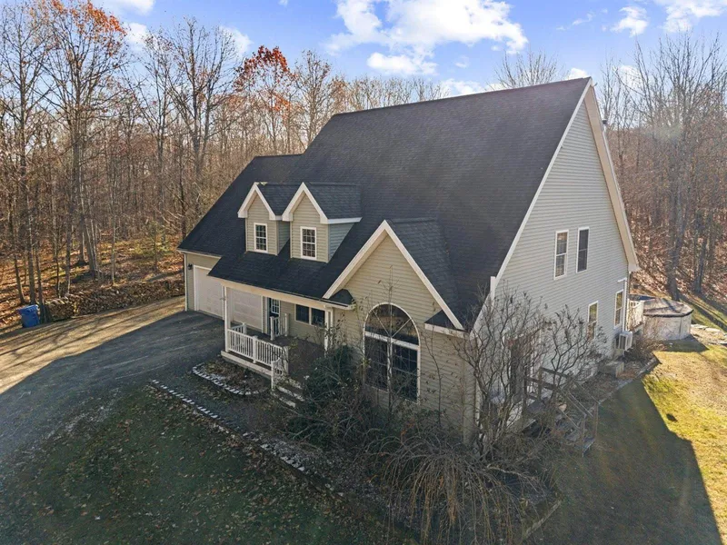 Experience the epitome of quiet country living just 9 miles from Hampden Center. Set on 7.96 serene acres, this beautifully maintained home directly abuts 115 acres of conserved woodland owned by The Landmark Heritage Conservation Trust, offering outstanding privacy and access to a scenic walking trail. The inviting open-concept interior features cathedral ceilings in most rooms, maple hardwood and tile flooring, and a spacious kitchen with an island perfect for gathering. The first floor includes a primary suite, creating comfort and convenience. The dining area and living room—complete with a cozy wood stove—open to a private deck and pool for relaxing or entertaining. Upstairs, you'll find two oversized bedrooms with cathedral ceilings and a spacious full bath, as well as an impressive 34' x 34' family room, finished in 2020, providing a fantastic space for gathering, gaming, or creating the ultimate media room. The finished garage offers radiant floor heat, storage cabinets, and direct basement access. A 24' x 34' two-stall barn/garage is ready for your vision—ideal for hobbies, storage, or animals. Thoughtful updates, including a new tankless heating system installed in 2024, add comfort and efficiency to this well-cared-for property. Cherished by its owners, this home is a rare opportunity for peaceful country living with modern conveniences.