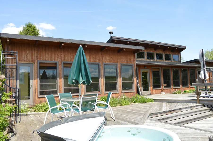 3.8 acres with pond and stream. Detached 3 car garage. 1-story 2,000 sq. ft. 3 bedroom, 2 bath passive solar home is located in the rural Perry Valley, but close to major highways to allow an easy commute. The large deck, the sun room, the master bedroom, the dining room and the great room offer panoramic views of the property and the neighboring fields and woods. Upgraded kitchen w/ siltstone counters. Ceramic floors, cathedral ceilings, exposed wood beams and Andersen windows throughout home. Propane whole house generator.