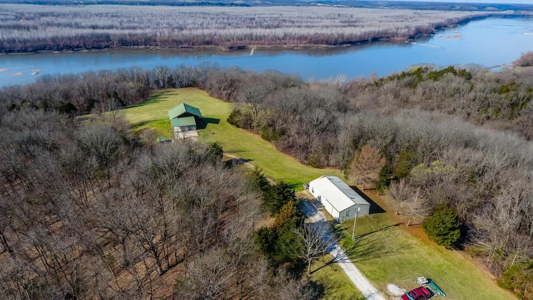 AN INCREDIBLE ESTATE! This custom built PRIVATE resort-like log home is positioned atop the river bluff in Hartsburg. Situated on 25.51 acres (additional avai) overlooking the Katy Trail and breathtaking MORiver. The amazing sunsets, extensive wildlife, infinite scenery and seclusion makes it feel like a vacation year round. The property boasts 3 bd, 3 ba, 2 car garage, ample storage, and over 2,000 SF of space. The unique floorplan offers a more than comfortable living experience and the floor to ceiling windows provide a light filled 180-degree view of the MO River bottoms. The property stays breezy and cool in the summertime and the wood stove maintains a cozy winter season. There's plenty of room to spread out on the exterior with two 10 x 40 covered decks, a 33 x 12 concrete patio...