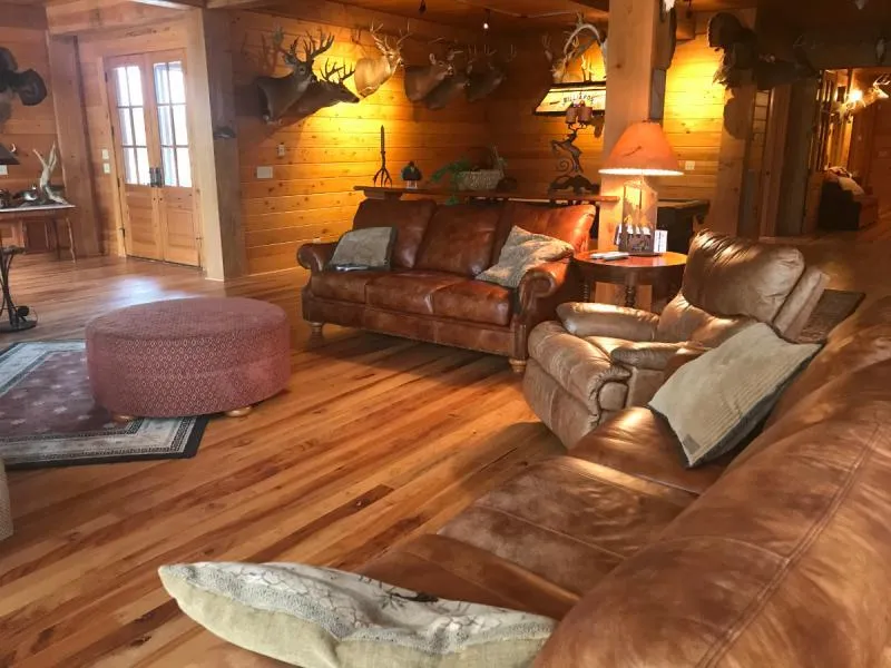 Lodge has multiple rooms and bathrooms to accommodate a bigger hunting party.