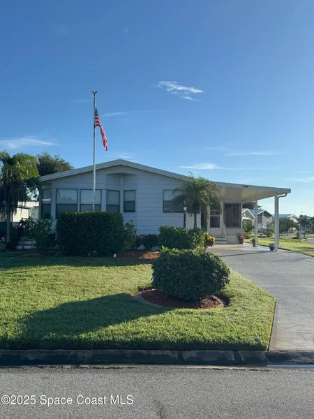 Nicely landscaped beautiful Corner lot in the heart of Recreational Barefoot Bay! Over 1200 sq ft, Morning Room, Dining Room, Living Room, ''L'' shaped Kitchen, updated laminate flooring throughout most, interior laundry room, Raised Glass Porch, huge Master Bath has Garden Tub, Walk in Shower & double sinks, Roof estimated to be 2 years, HVAC estimated 2019. Home is a MUST SEE! Make this home yours today! Perfect for the first time home buyer, seasonal vacationer, or change of pace retirement home. Enjoy going to the pools, lounges, golfing, bocci, horseshoe, tennis, fishing pier, private beach, clubhouse, walking path, clubs, mini golf, and the gorgeous Florida Sunsets by the Lake. Onetime Social Membership fee $1605 & incorp. into annual taxes $1007.17