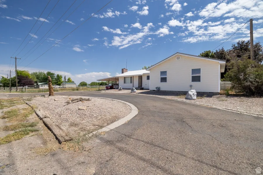 3 bedroom, 2 bathroom 2082 sq feet home on 2.25 acres. Pasture has sprinkling system with .07 premier, 3.00 S-Stock water shares. Metal roof is 5 years old; vinyl siding 5 years old; 5-ton central air conditioner/heater 3 years old. Generac generator 26KW well service house and all sheds, runs off natural gas and has hook ups for propane. Solar Panels, gas fireplace, woodburning stove. Three outdoor sheds: Shed #1 has 6 cords of wood all cut and stacked for fireplace. Shed #2 makes an ideal workshop or storage with electricity. Shed #3 makes an ideal playhouse for the little ones. Trex custom patio deck and two large shade trees. 50 amp breaker RV plug in front yard with sewer clean out. 5 car carports with additional workshop with electricity and AC. Square footage figures are provided as a courtesy estimate only and were obtained from county records. Buyer is advised to obtain an independent measurement.