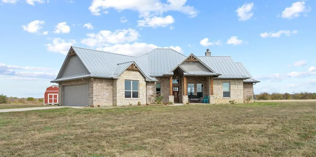 Bring your dreams of living in the country on this 10 acres with newer construction (2016). Home offering 2037 sq. ft. open concept layout with 4 bedroom and 2 bath (1 BR used as office). This beautiful home offers lots of natural lighting and big windows to capture the serene county landscape, home offers tall high ceilings, with natural exposed beam accents, hardwood floors throughout, entertainers dream kitchen with a huge working island, farmer's sink, granite countertops and stainless steel appliances, large pantry all opening to dining room, and large living room with fireplace. Spilt bedroom arrangement with large master with huge closet and large master, double vanities and soaking tub and tile shower, large laundry and storage galore. 2 car attached garage. Home offers metal roof and wonderful finish out. 290 ft covered back porch with a TV hook up and plenty of room for outside entertainment. Enjoy the view while cooking outdoors and don't miss a minute of football games in this home with all the bells and whistles. Located just a few miles from downtown Kaufman with easy access off Hwy 34 and Hwy 175. (40 mins to DFW). Plenty of room for kids, pets, and livestock. 10 acres is currently in AG for hay production. Rare find and GREAT LOCATION, MUST SEE PROPERTY.