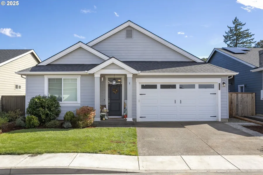 Ask about 5.25% interest rate with preferred lender! Located in the desirable Campanella Estates and built in 2020, this beautifully maintained single-level ranch offers 3 bedrooms, 2 baths, and 1,853 sq. ft. of thoughtfully designed living space including a comfortable den, perfect for a home office, play room, or nursery. The open great room features a cozy electric fireplace, high ceilings, and large windows that bring in natural light, creating a warm and inviting atmosphere. The kitchen is a standout with quartz countertops, a generous island, stainless steel appliances, and a walk-in pantry—perfect for both everyday living and entertaining. The primary suite includes a spacious walk-in closet and a spa-inspired bath with dual sinks and a walk-in shower. Outside, you’ll find updated landscaping around the entire perimeter, raised garden beds with fresh vegetables, and a covered patio ideal for year-round enjoyment. The property has been lovingly cared for inside and out, reflecting pride of ownership at every turn. A two-car garage provides added convenience and storage. Set in a well-kept neighborhood close to schools, shops, parks, and outdoor recreation, this home offers the perfect balance of small-town charm with easy access to the Portland metro. Call today to schedule your private tour!