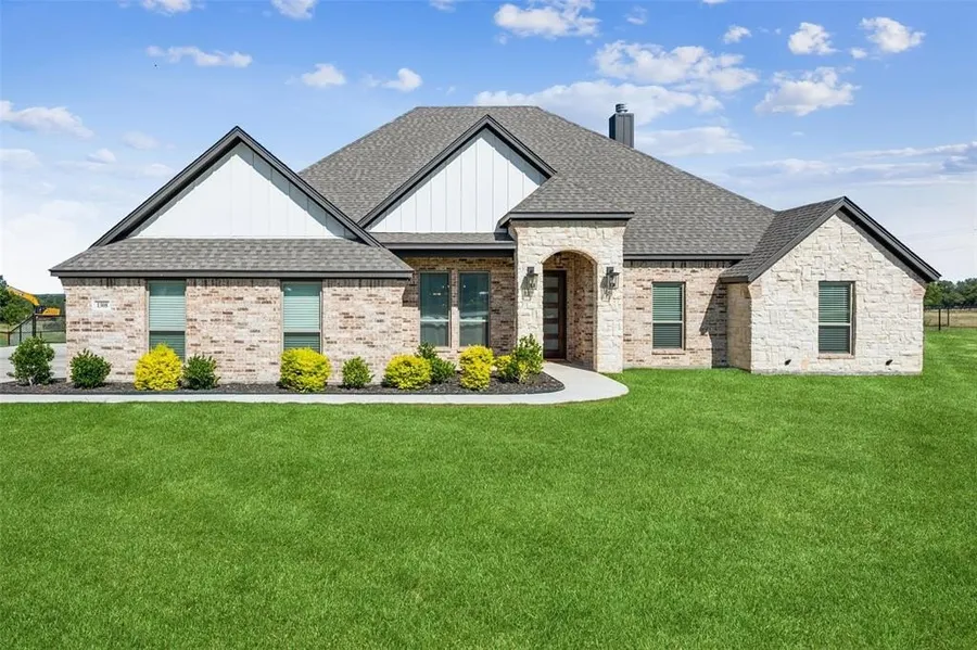This gorgeous home on a spacious one-acre lot offers the perfect blend of luxury, comfort, and function. Beautifully built and meticulously maintained, it shows like a model home and is move-in ready. From the moment you walk in, you'll appreciate the quality craftsmanship, thoughtful design, and abundance of natural light throughout the open-concept floor plan. The heart of the home is the inviting living room, featuring a high tray ceiling with wood beam coffered detail and a striking stone fireplace that adds warmth and charm. The chef’s kitchen is a dream—complete with a large island, stainless steel appliances, a farmhouse sink, granite countertops, walk-in pantry, and a sunny breakfast area that opens to the living room’s wall of windows. The tranquil primary suite is a private retreat with a spa-like ensuite bath offering a walk-in shower, garden tub, dual vanities, and walk-in closets. A versatile front office with barn doors can easily serve as a formal dining room. Outdoors, enjoy peaceful views and fresh air from the covered patio. A spacious 3-car garage provides ample storage and convenience. Don’t miss this exceptional home—schedule your showing today!