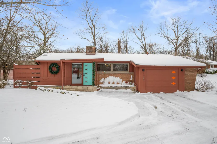 Incredible and original mid-century modern 4-bedroom ranch tucked away on a private, wooded 0.57-acre lot - a rare opportunity for investors, renovators, or mid-century enthusiasts. A long, welcoming driveway and expansive front yard set the tone, and from the moment you step inside, you're transported in all the best ways. Vaulted ceilings with exposed wood beams, classic parquet flooring, & rooms full of natural light showcase the iconic mid-century design. The spacious living room features a stunning wall of windows overlooking the private patio, paired with a double-sided wood-burning fireplace shared with the dining room-an ideal layout for entertaining. The dining room is enhanced by a statement Sputnik chandelier and built-ins for display and storage. The kitchen flows seamlessly from the main living spaces and offers stainless steel appliances, gas cooktop with hood, built-in oven, modern lighting, and a truly unique mid-century floor. A built-in counter provides additional seating or workspace, while the washer and dryer are conveniently tucked just off the kitchen with extra cabinetry for storage. Mid-century character continues in the primary bedroom and bathroom, featuring textured wallpaper and a tiled tub/shower combo. The second bedroom showcases vaulted ceilings and wood accent walls, while the third and fourth bedrooms used as a guest room and home office are located near the second half bath. Outside, a concrete paver patio is surrounded by mature trees, creating a peaceful, private setting. The thoughtfully maintained landscaping and storage shed add to the property's usability. Majority of vinyl windows were replaced in 2022, and the original double-paned picture windows in the living room remain in good condition. Price reflects repairs needed and presents a strong value-add opportunity. Offered AS-IS, CASH ONLY, this is a compelling investment for those seeking a distinctive property with character, location, and upside potential.