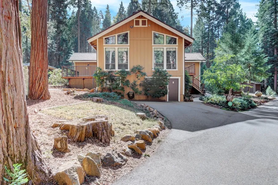 Serene and tranquil one story home on a breathtaking 2.5 acre parcel in Nevada City! Paved circular driveway leads you up to this manicured property that has been lovingly cared for! Dramatic open floor plan with vaulted ceilings complimented by the open beam knotty pine, the floor to ceiling windows that invite the outdoors in! Generous separate bedrooms are lovely, but still give a great sense of privacy. The primary bedroom has a sweet deck off the sliding glass door and is ideal for a hot tub! Under the home is a perfect office or gym, which is spacious and huge! Manicured grounds and paved walkways throughout the property includes a huge fenced garden, covered concrete gazebo and firepit, detached two car garage and one car garage! The spring time evokes absolute joy with the mature Rhodendrums and azaleas and the strong well encourages more gardening! Good solar exposure, high speed internet and a wonderful neighborhood!