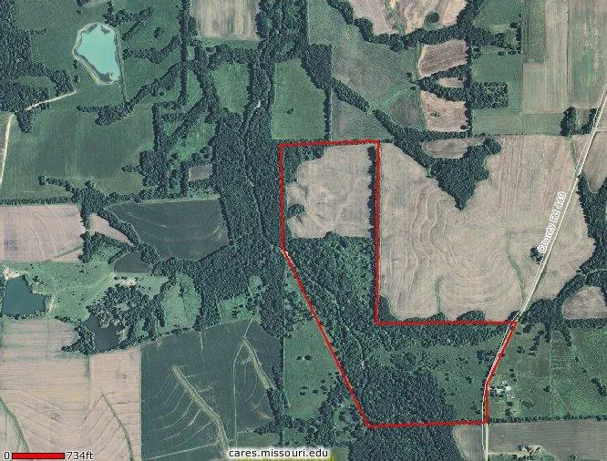 131 acres located near Laddonia in Audrain County. 38 acres currently tilled and another 30 that is a pasture and could be farmed after clean-up. Creek running through property with lots of deer and turkey. Price at $2,850/acre.