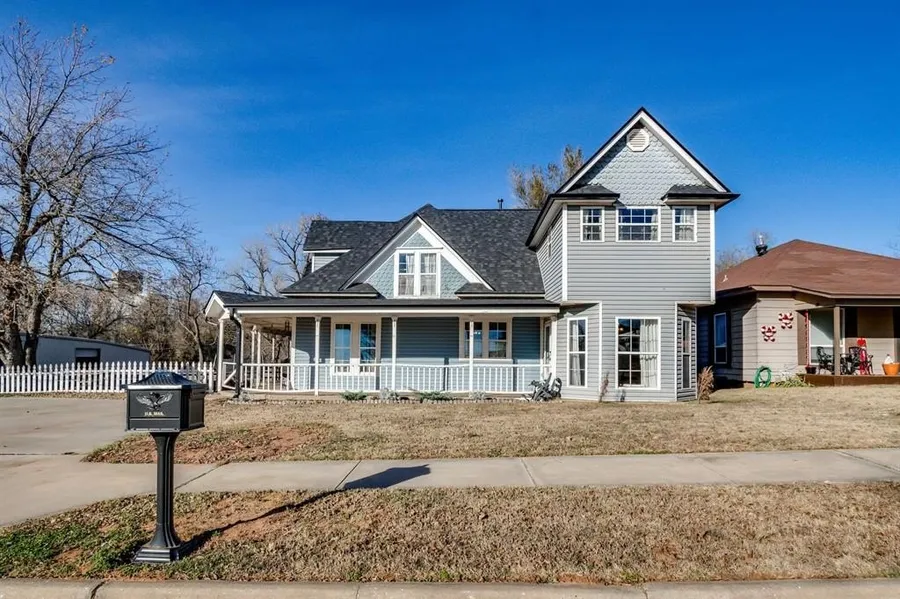 Victorian inspired home full of charm and character, thoughtfully maintained with key modern updates. A dining area expansion enhances everyday functionality while preserving the home's historical feel. Features include an updated kitchen with reverse osmosis at the sink, fully remodeled downstairs bathroom, and electrical brought to modern code during restoration. Major updates include a new roof, AC unit and furnace in 2024. A rare blend of history, comfort and peace of mind in the heart of Yukon!