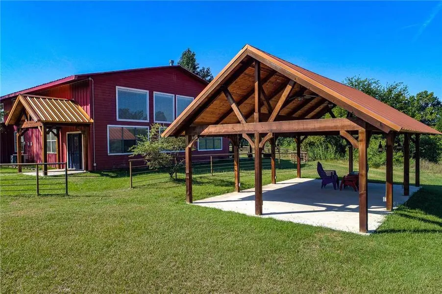 Two homes on 49 acres. The Barndominium is used as a Venue for weddings, and groups for entertaining, family reunions, etc. Features 5 bedrooms, 4 full baths, large living area, nice large kitchen. This structure could easily be a main residence or weekend home, but large enough for a venue. There is one large room that was originally a horse barn, stalls remain, but flooring as been installed for storage or other use. A second home is also available in this offering, has 2 bedrooms, 1 bath, large living room. Has been used as tenant home, but could easily be a family residence. Nice set of cattle pens, plenty of land for cattle and horses.