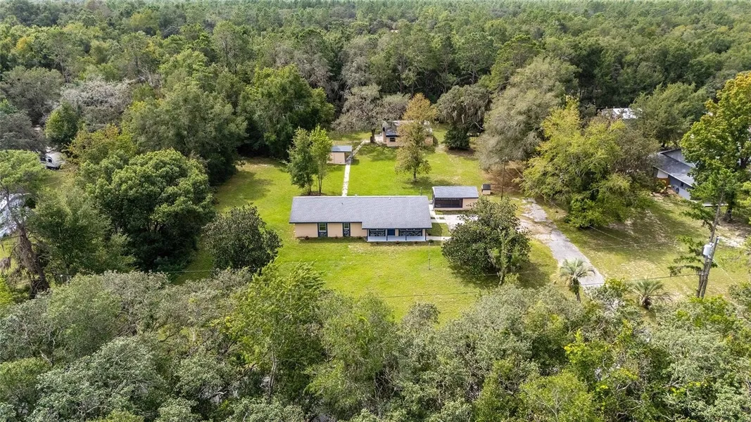 Discover this delightful, updated 3-bedroom, 1 1/2 bath home situated on a serene 1.25-acre lot. This inviting property seamlessly blends modern enhancements with tranquil surroundings, making it your perfect Florida getaway. This home features thoughtful upgrades, like a completely remodeled kitchen, tastefully updated bathrooms, and luxury vinyl plank flooring throughout. A new HVAC was installed on the main home, and a roof was installed on the Main Home and external buildings in 2021. The expansive lot includes additional structures that provide versatile opportunities waiting for your creative touch — perfect for a greenhouse, workshop, storage, or the potential conversion into a mother-in-law suite. Whether you seek space for hobbies, guests, or future expansion, this property offers ample room to grow. This home is also centrally located, allowing you to experience the best of both Citrus and Marion Counties. Here, you can indulge in excellent dining, shopping, and entertainment, as well as enjoy boating and fishing along the chain of lakes or explore miles of walking and biking paths along the Withlacoochee Trail. Conveniently located just a short drive from Dunnellon, Crystal River, and Ocala, this location provides you with quick access to outdoor adventures and daily necessities. This home strikes the perfect balance between tranquility and convenience that you’ve been searching for. Schedule your appointment today to learn more!