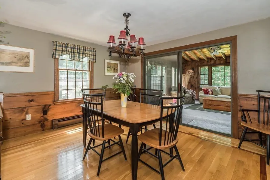 3000+SF in N Andover under $600k! . Bedrooms on both the first and second floors accommodate all of life's stages. The kitchen looks into the heart of the home a spacious family room with a wood stove and beamed ceilings. A separate and private first floor bedroom and laundry room sit just off the family room, perfect for an au pair or potential in law. A formal dining room sized to seat many provide views of the beautiful all wood bonus/sun room. A more formal living room rounds out the main level. The second level boasts three well sized bedrooms and two additional full baths. An in ground pool and level yard provide endless hours of summer entertainment. Lush wooded land abutting conservation land provides privacy and scenic views. This special home needs to be seen to be appreciated. Located between 114 and 93, enjoy the comforts of country living while having access to the major highways. Call today for a private showing.