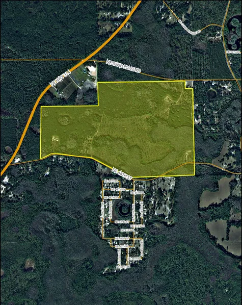 This property is approximately 950 feet east of CR 314 and bounded on the south by NE 46th Street and on the north by NE 52nd Place Road.