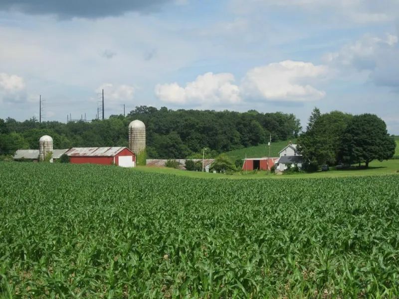 Productive farm with investment value. 2 homes on property, 1 frame & 1 stone. Large bank barn & silos. Implement sheds & dairy. 90 acres tillable, 14 acres zoned commercial + 6 building rights.