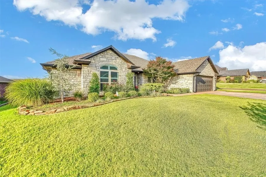 Just reduced! Serious Seller so schedule your showing now! This one won't last long!! An elegant 4 bedroom, 3 bath home on one of the few exclusive streets at Elk City Golf & Country Club! This home has a split floor plan with 3 nice size bedrooms, spacious walk-in closets, & 2 bathrooms, (1 jack & jill) on the family side. The living,(with beautiful black marble fireplace), dining, & kitchen areas are all open & flow nicely into a master suite that has a large walk-in closet with multiple built in shelves and storage areas. The master bath has a soaking tub, shower, and makeup vanity built in. The home has wooden shutters & ceiling fans throughout, hardwood & tile in all living areas and hallways, carpet is in bedrooms only. The home has an office off of entry with glass french doors and a front window. The backyard has covered patio, bathhouse, inground pool, and pergola for entertaining! Large planters stretch across the back of the home connecting patio to extra garage/storage bui8lding. The storage area can be anything you make it as it has tile floors and connects to a 3 cart garage for your golf carts or more storage. Both garages have keypad entry.