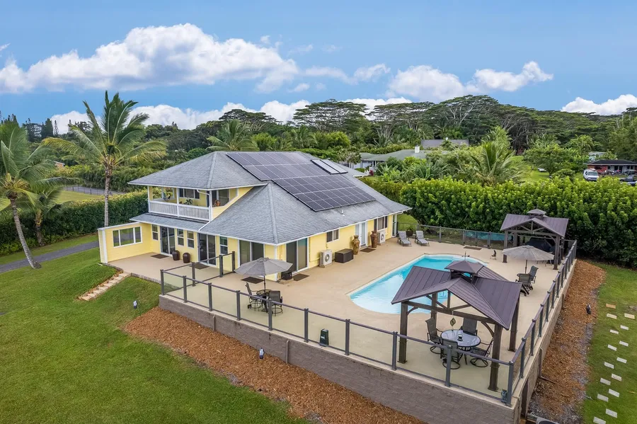 This tropical paradise is a one of a kind home located on Maui's renowned North Shore. It boasts panoramic ocean views, tropical fruit trees, and exotic plants, a cascading waterfall, groomed gardens, a swimming pool and much more. Come and enjoy the laid-back lifestyle that Maui is famous for on this serene and secluded paradise in Haiku, a short walk will bring you to the best site for viewing surf competitions at Jaws, a famous surf spot known for its colossal waves . Incredible panoramas of the sea can be taken in from the living room, dining room, kitchen master bedroom and pool. Enjoy the morning on your private terrace while the sun rises. Spend time with your guests on the spacious Lanai located off the kitchen. Catch the sunset while floating in the heated pool. There are 2 12 by 12 gazebos outfitted with fans and electricity, patio furniture and Barbeque all on the large pool deck. The Ohana is a private space located away from the main home, it is completely renovated with updated kitchen bathroom, appliances, flooring and more. Enjoy the Maui breezes on the veranda off the living room Both homes feature new solar systems and Split AC units, and spacious garages. Both homes are offered mostly furnished. Sale includes a John Deere riding mower and 4 by 6 trailer. This property is turn key! For a complete list of upgrades please see attached documents. Property is graded for excellent drainage Both solar systems are owned OPEN HOUSE 2/5/23 12 TO 4 PM