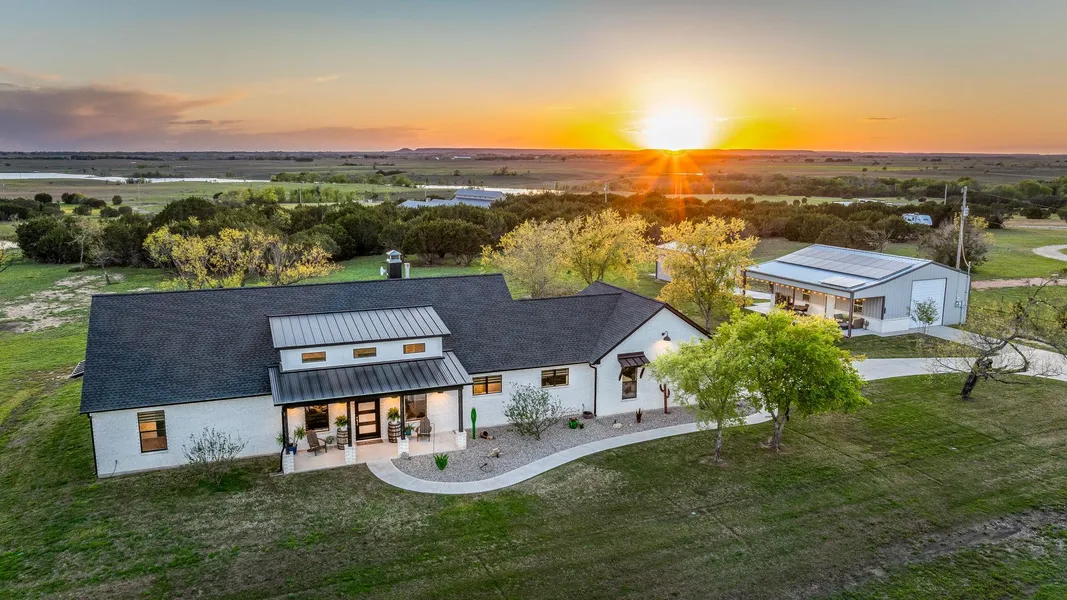 Welcome to your dream retreat in Walnut Springs! This stunning custom home boasts spacious rooms, natural lighting and 3 bed, office bonus, 2 baths. Manufactured hardwood floors, vaulted ceilings and an oversized mudroom utility. The open floorplan features a gorgeous kitchen showcasing a large farmhouse sink, quartz countertops, soft close cabinets, and stainless steel appliances and a built in wine beverage refrigerator! Floor to ceiling fireplace, custom-built surround sound, and custom window treatments, sprinkler system, tankless water heater and more. Outdoor wood-burning fireplace, patio fan, and outdoor speakers TV. Take in the scenic views from three covered porches. Two insulated shops await right in your backyard, including a 30X40 shop with a covered porch and drive through doors, a 15X29 shop with drive-through garage doors. Both shops are equipped with 220 power, and the larger shop is plumbed for a bathroom. Conveniently located just 5 miles from Rough Creek Lodge.