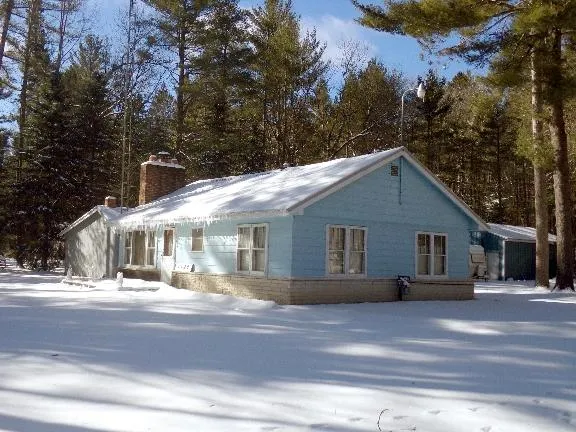 WOLF CREEK FRONTAGE Mio, 2 bed , 1 bath with brick fireplace, lots of knotty pine, laundry room, NG heat, Newer steel roof, attached garage, 24x32 pole barn all on 1 acre with wolf creek winding through the yard $ 54,900 A-2582