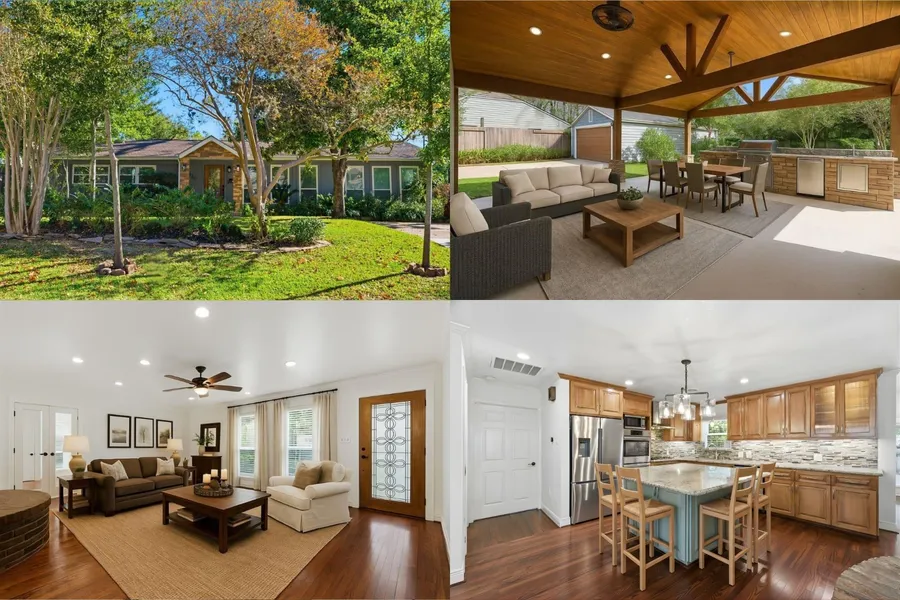 Experience refined living in this fully renovated three-bedroom, two-and-a-half-bath home on a rare 15,000-square-foot lot surrounded by lush, private landscaping in Whispering Pine Estates. Thoughtfully updated, it blends modern design with warmth and versatility. Elegant wood flooring, custom cabinetry, and chef-inspired stainless steel appliances elevate every detail. Sunlight pours through double pane, energy-efficient windows, creating bright and open spaces that feel both stylish and serene. Step outside to your own private oasis featuring an expansive covered patio, full outdoor kitchen, a complete irrigation system, and specimen trees and shrubs that frame the setting in natural beauty. Ideally located near I-10, CityCentre, and Memorial City, this home defines timeless living.