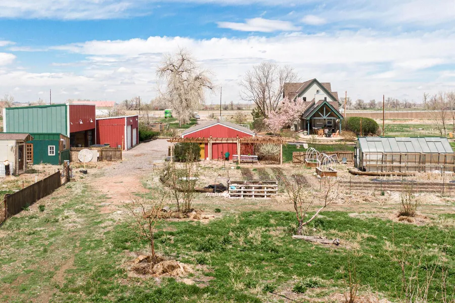 Could it be true? Convenient, country living within 25 minutes of downtown Denver and 20 minutes of DIA. Your dream home awaits, sitting on almost 9 acres, including your own apple orchard and abutting the South Platte river! This inviting, light filled farmhouse has soaring ceilings with intentional, delightful touches of sophistication throughout. Views abound from every window in this cheerful home. Enjoy sipping coffee on the deck of your main floor master or use the attached sunroom to relax and read. Looking to entertain? Even socially distant entertaining is simple here. Multiple outdoor spaces are yours for the choosing. Sit on your patio at your outdoor kitchen, make smores by the huge fire pit, have a locally crafted wine dinner under the pergola outside your guest building. Start your seedlings in your greenhouse. Interested in pottery? This property has its own kiln. Have an apple picking party, fish in the river, eat fresh eggs from your chicken coop. Across the street from public park and miles of bike trails. Less than a mile to local brewery and coffee shop.The possibilities here are endless. Be away from it all and still close to town. Its the best of both worlds!