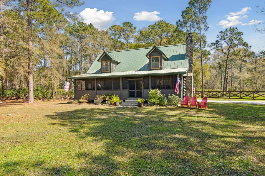 Come and see this private, secluded and immaculate 3/2 log cabin home that rests on 1 acre and nestles up to the Pumpkin Hill Creek Preserve State Park! Recently appraised at 575K! Highlights of this home include open kitchen with granite countertops, stainless steel appliances, family room with wood burning fireplace, new tile and plank flooring, updated bathrooms and showers, large master suite, downstairs guest en-suite, large upstairs loft, plenty of storage space and much more. Step outside and enjoy the scenery and tranquility of this spot from the swings on either of the two porches. Or open the gate and take a hike on the nearby trails. Other highlights include new washer and dryer, new exterior paint, a large storage shed, new pavers, near fully fenced yard and a large pump house. With easy access to I-295 and local shops, restaurants and amenities make this the perfect place to call home! Schedule your private showing today!