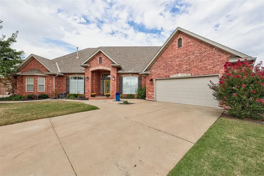An amazing and uniquely suited home with full attached apartment in Yukon's desirable Kingsridge addition. The main house has 3 bedrooms + office + formal dining and three full bathrooms. There is an incredible separate apartment which can be accessed from inside the home or the garage which contains one full bedroom, a loft, a fireplace, and full kitchen plus dinette. The home is 2,767 square feet and the apartment is 1089 square feet for over 3,850 of combined living space. The natural light is the first show-stopper. 13 foot ceilings with added accent lighting and beautiful light coming in at all times of day. Beautiful french white oak engineered wood floors. Very large lot. Completely renovated kitchen in the last 3 years includes white cabinetry, custom selected quartz counters, decorative backsplash, and pot-filler attachment. No stone has been left unturned. This home is a perfect solution for those with caretaking needs. Don't forget to view your 3-D tour online! It's a beautiful, peaceful retreat ready to welcome you home!